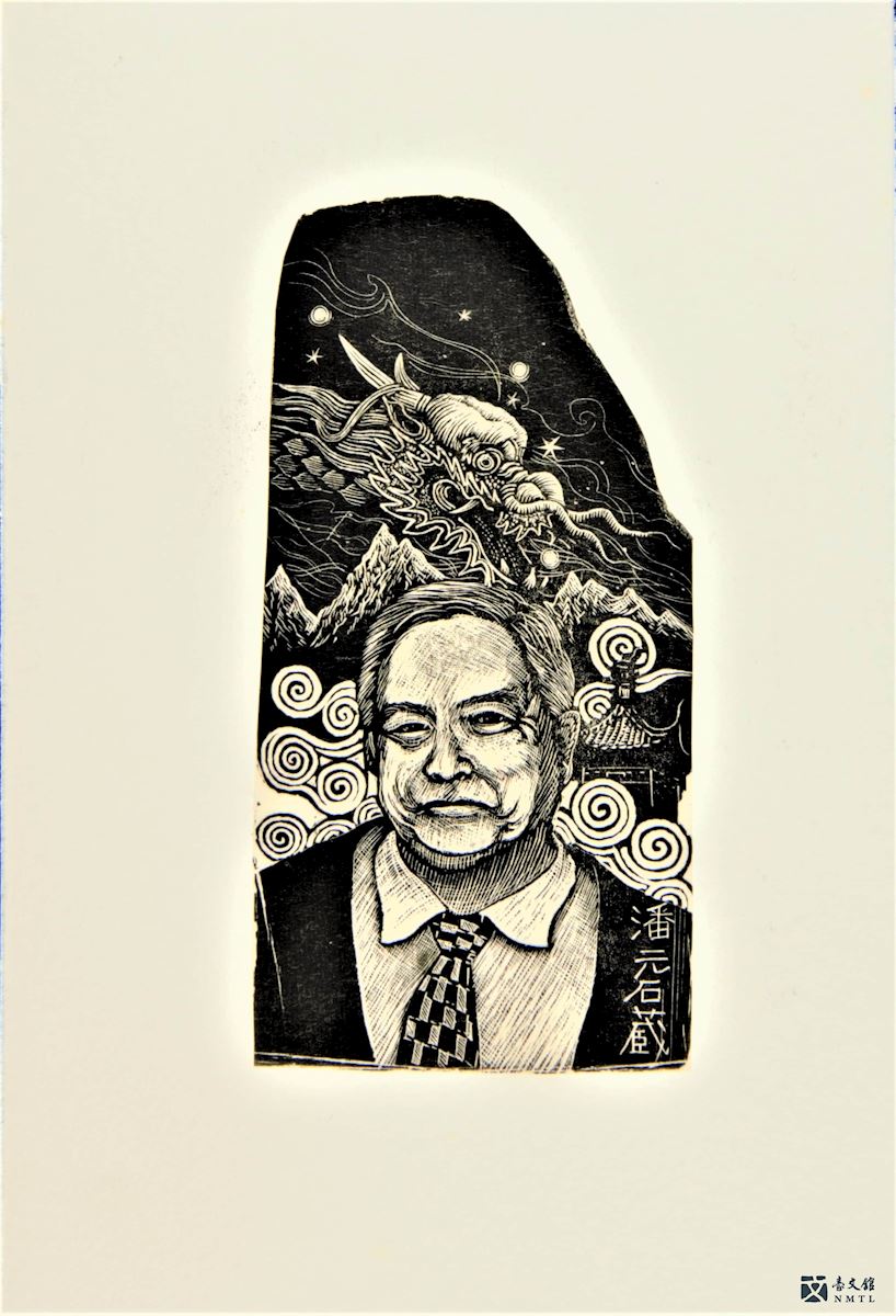潘元石,年輕時在臺南啟聰學校擔任美術教師,退休後任奇美博物館執行長,長年醉心於藏書票的收藏和製作,至今仍然創作不輟。他也因為藏書票的緣分結識西川滿先生,晚年多次至日本拜訪西川滿先生。