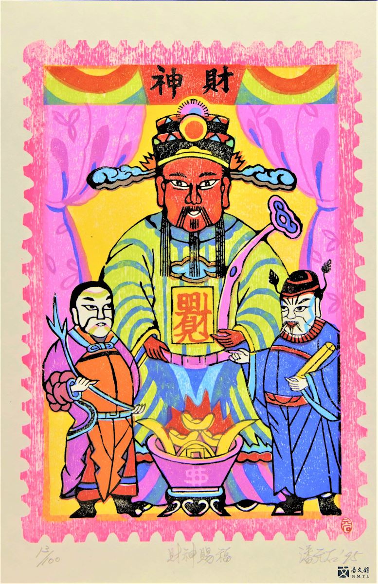 潘元石印製藏書票──財神賜福。